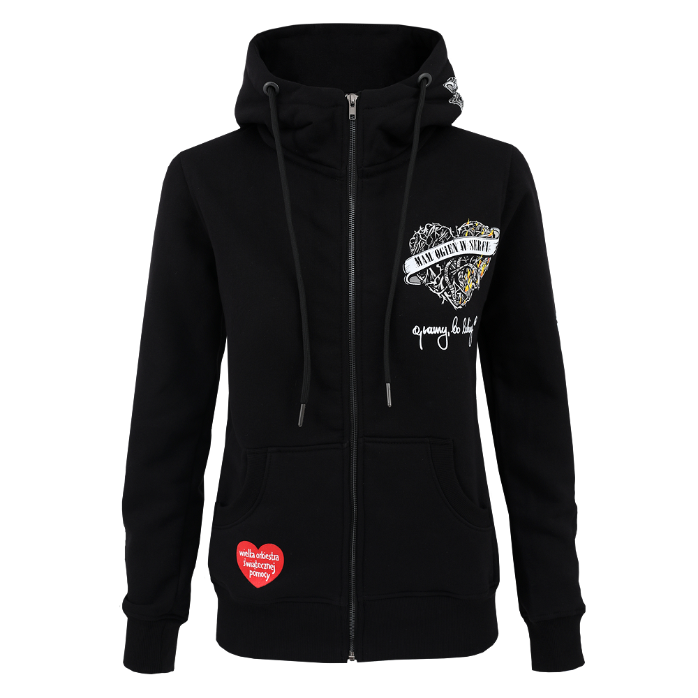 Na rękawach oraz na dole bluzy znajdują się ściągacze 300 g/m2. Bluza dodatkowo posiada kaptur. Wyposażona jest także w zamek metalowy szlifowany Zipper Suwaki. Przed pierwszym użyciem bluzę należy wyprać, ponieważ dresówka drapana może przyczepiać się do odzieży noszonej pod bluzą.