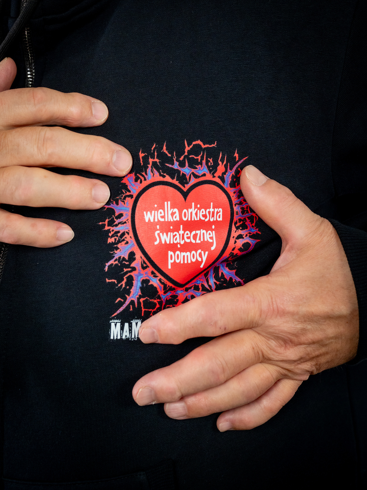 Czarna bluza z kapturem stworzona z okazji 34. Finału Wielkiej Orkiestry Świątecznej Pomocy. Wygodna, ciepła i idealna na co dzień oraz na finałowe granie.