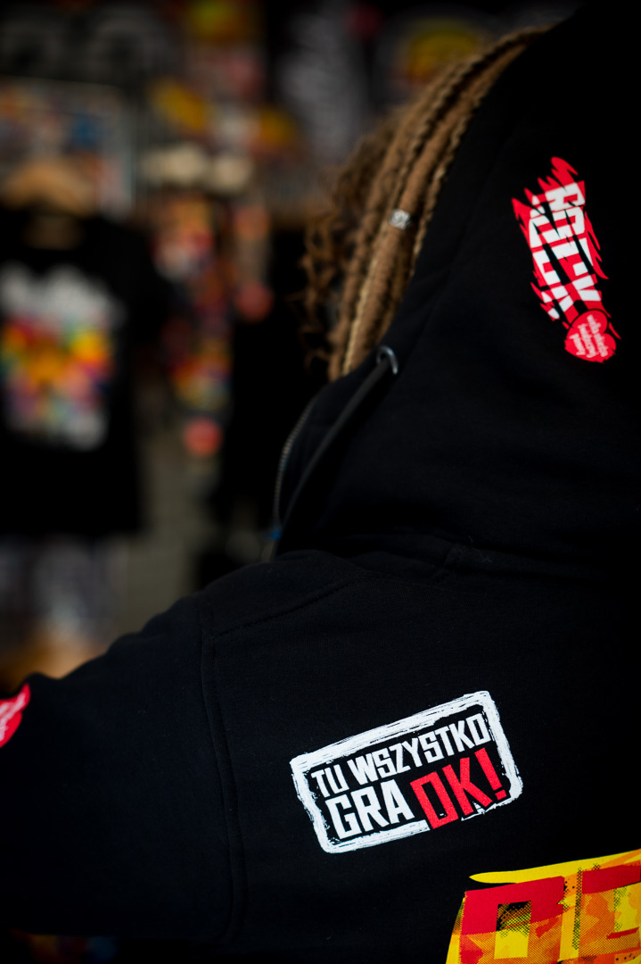 Czarna bluza zapinana na zamek z bardzo wysokiej jakości dzianiny bawełnianej z niewielką ilością poliestru (90% +10%) z nadrukowanym ciekawym motywem. Produkowana w całości w POLSCE. Począwszy od materiału, znakowanie po szycie. Nadruk wykonany metodą sitodruku zapewnia jego trwałość oraz długotrwałe utrzymanie barwy. Dodatkowo wykończona taśmą drukowaną z logo w obrębie karku oraz wszywką firmową.