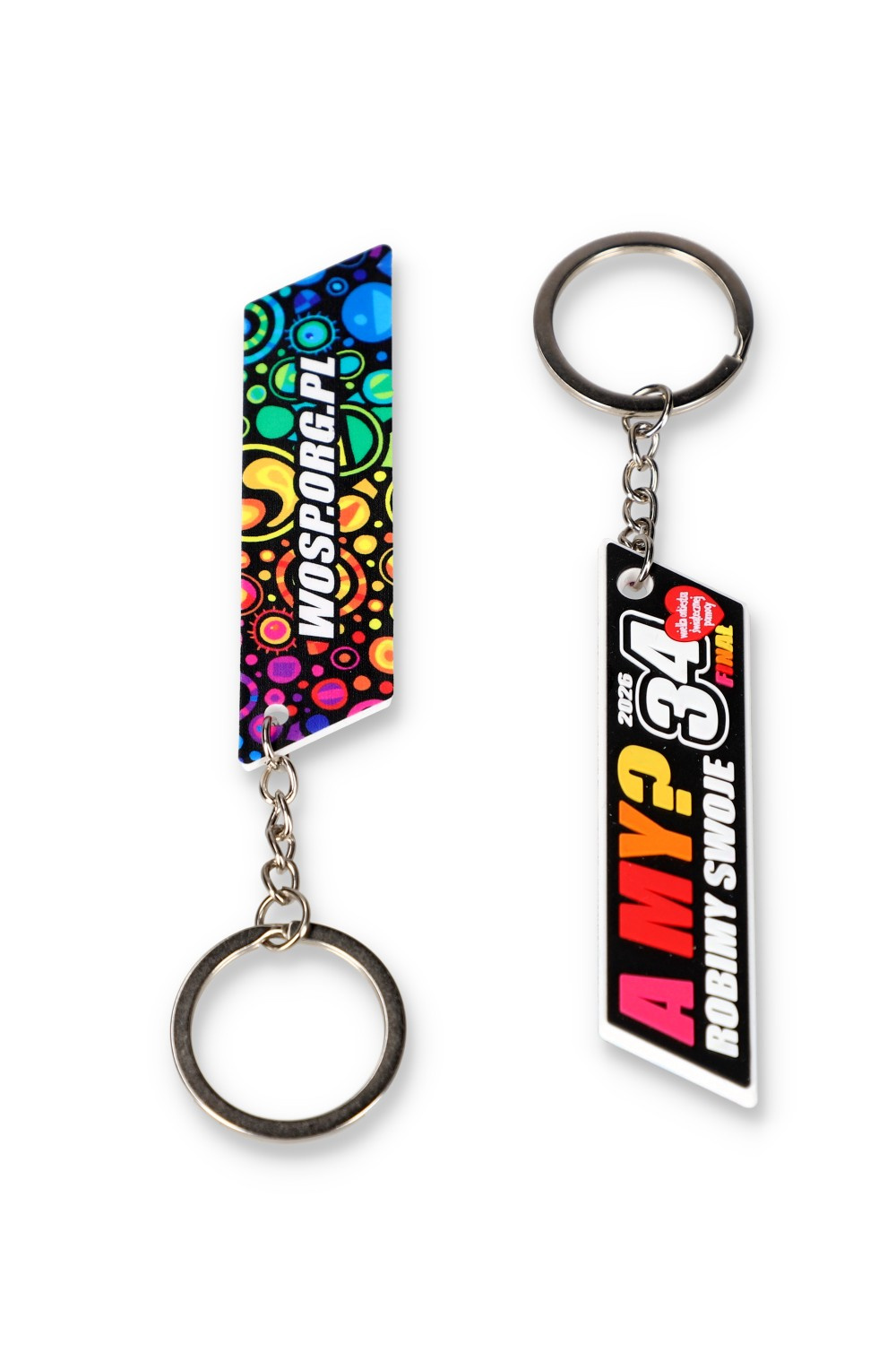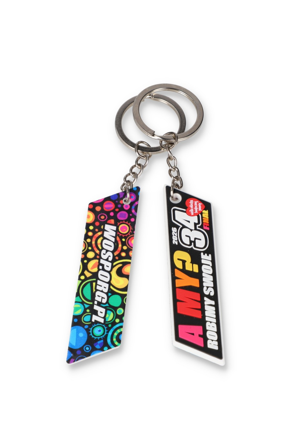 Ten wyjątkowy brelok łączy w sobie energetyczne kolory i pozytywny przekaz 34. Finału Wielkiej Orkiestry Świątecznej Pomocy. Z jednej strony mocny, wyrazisty napis „A my? Robimy swoje!”, z drugiej – barwna, artystyczna grafika pełna radości i dobrej energii.