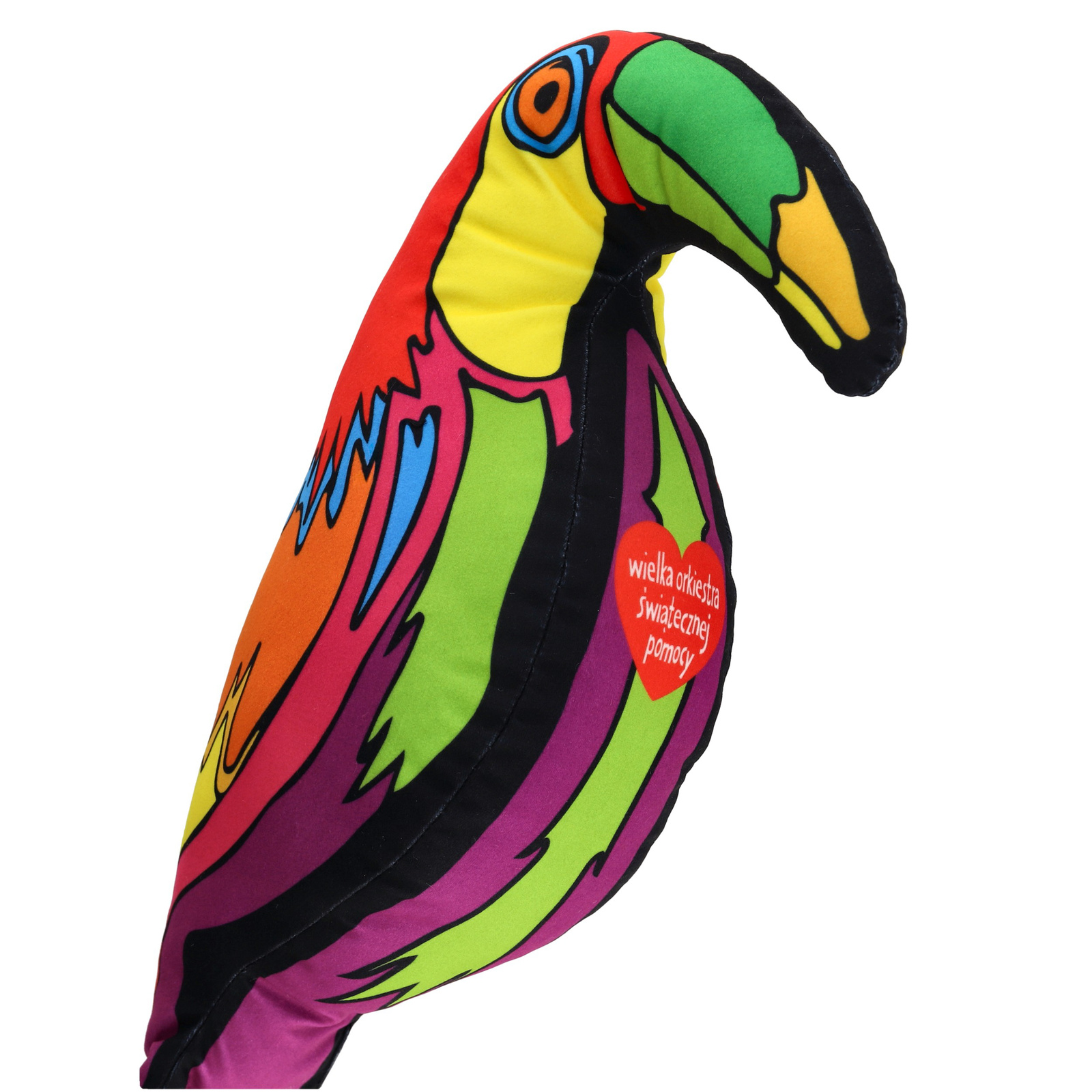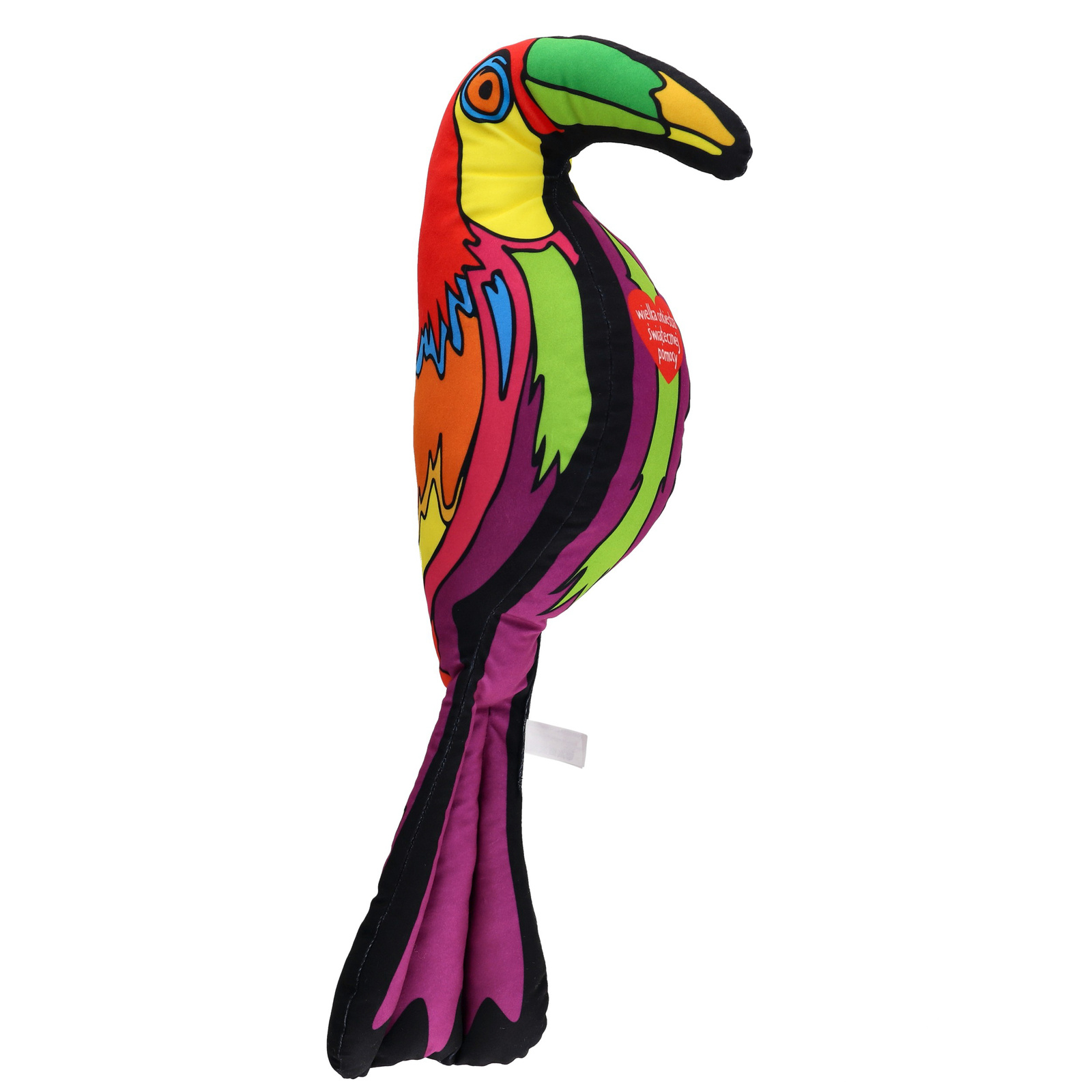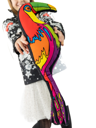 Ten niezwykle barwny tukan to idealny towarzysz zabaw i przytulania. Zachwyca intensywnymi kolorami, oryginalnym wzorem i przyjazną formą, która od razu przyciąga wzrok – zarówno dzieci, jak i dorosłych. Wykonany z miękkiego, przyjemnego w dotyku materiału, świetnie sprawdzi się jako ulubiona przytulanka, dekoracja pokoju lub wyjątkowy prezent.