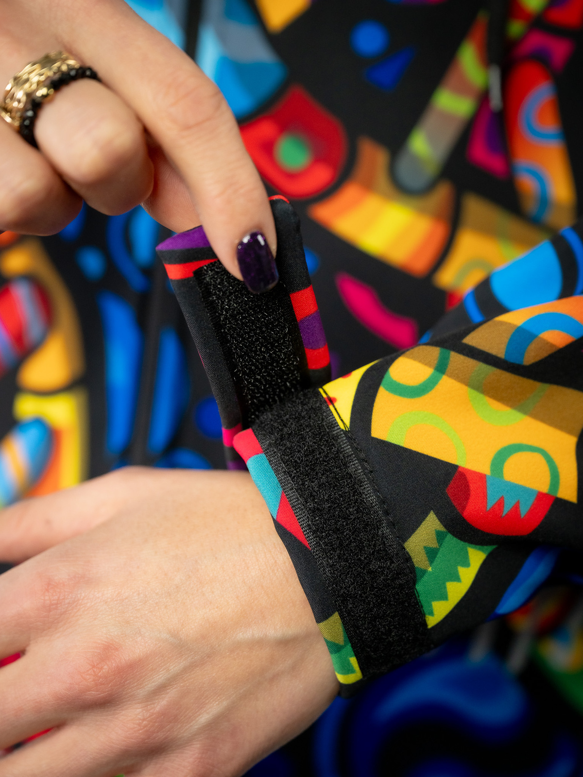 • Regulacja na rzep przy nadgarstkach - pozwala idealnie dopasować szerokość rękawa i zwiększa komfort noszenia