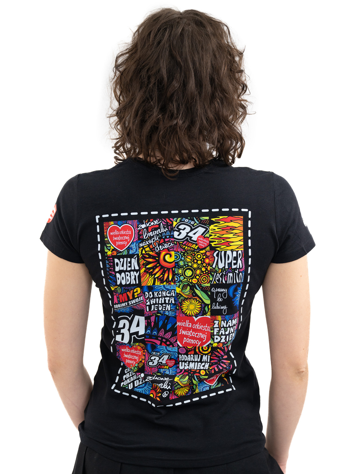 Kolorowy, pełen energii nadruk z numerem 34 oraz kultowym sercem WOŚP symbolizuje siłę wspólnoty i pozytywne emocje, które od lat łączą miliony ludzi. Czarna koszulka stanowi idealne tło dla intensywnych barw grafiki, nadając całości nowoczesny i wyrazisty charakter.
